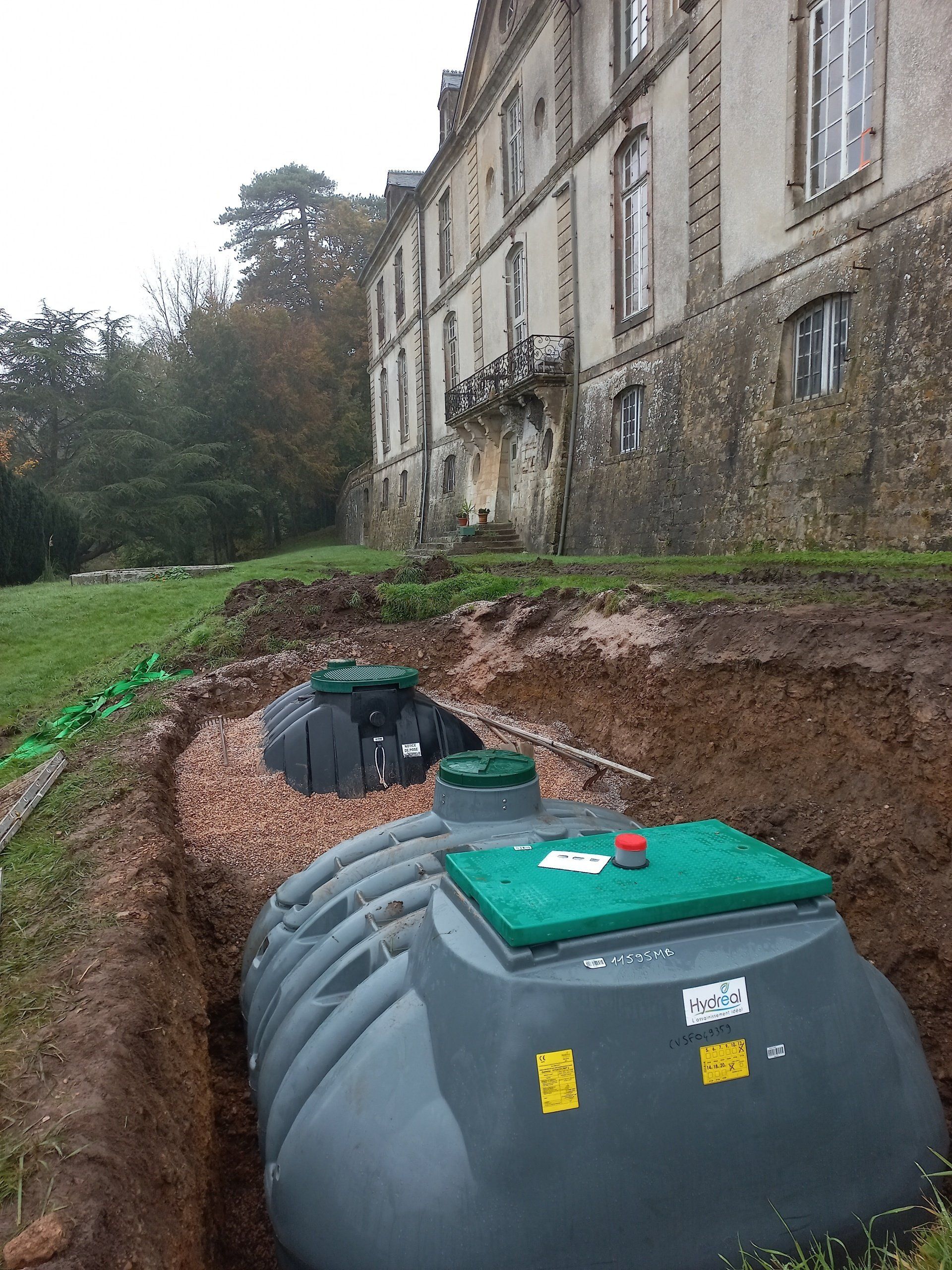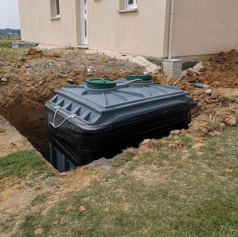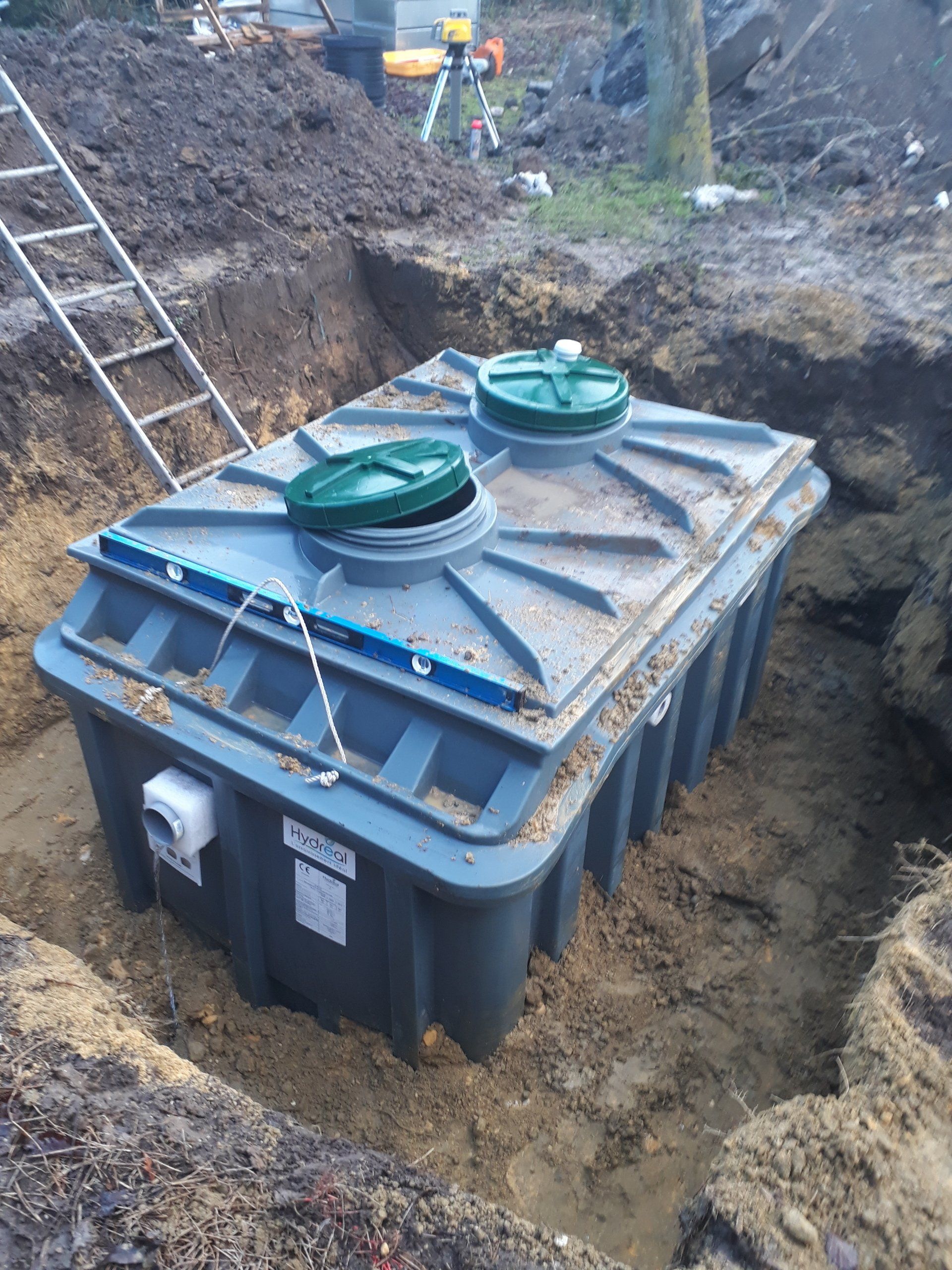 Installation de notre récupérateur d'eau pluviale Hydrostock de 8000 litres avec pompe immergée à Changé !! Fabrication française 🇨🇵 Demandez votre devis gratuit 👍 #renovationmaison #pluviale #terrassement #hydrostock #hydréal #récuperateurButton
